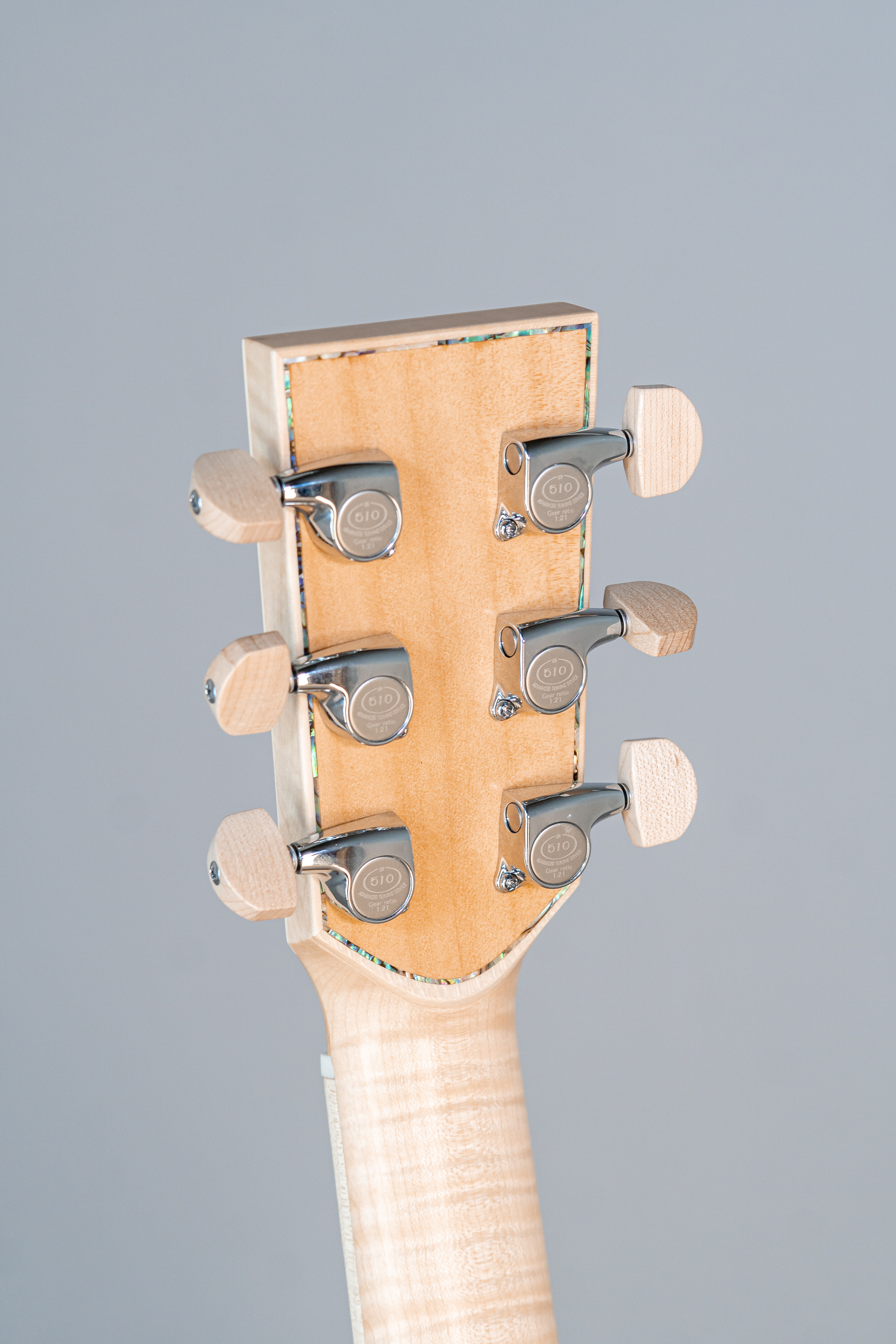 - Wood core slim with abalone purfling